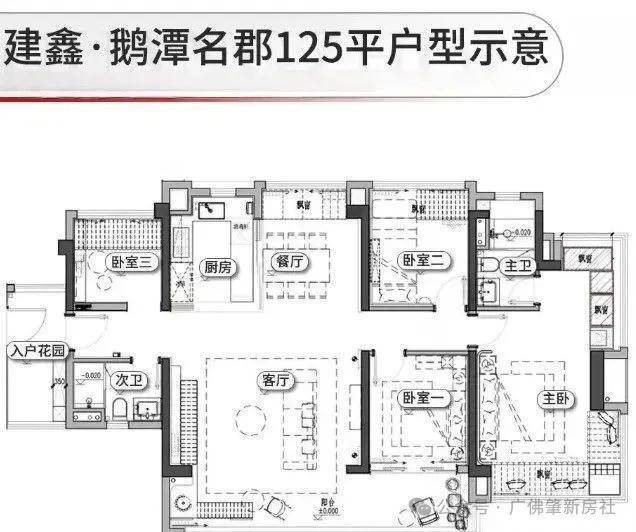 建鑫鹅潭名郡由6栋26-33层住宅组成,采用2梯5户设计,整个社区围合式布局,中间规划有大片园林,居住舒适度有保障。货量预估900+套,体量适中,便于管理。面积段为88、105、125平三种户型,实用率均超100%,正好填补了这一市场空白,尤其是88平的小三房,更是当下荔湾稀缺的产品。