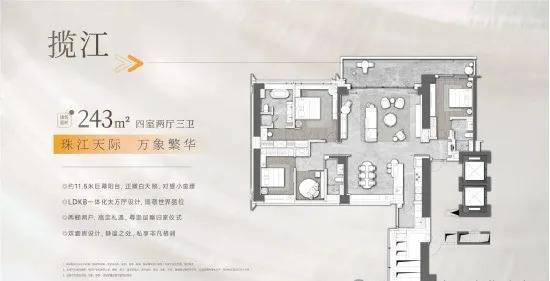 华润置地白鹅潭悦府位于广州五大商圈中---白鹅潭商圈的核心商务区位置,坐拥三江汇聚头排江景优质景观资源,企业总部市政配套集中地,目前更有顶流白鹅潭万象城和双太古商业体动工加持,距离项目200米的1号线芳村站即将实现3地铁交汇(广州11号线和22号线),地铁出行也比较便捷