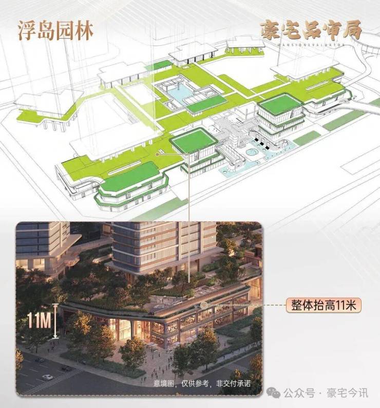 而利用这11米的纵向高度,保利打造了一套垂直立体的「浮岛园林」,总面积超过1.25万㎡。