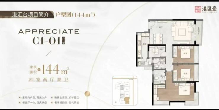 项目距离天字码头约200米,南向高楼层户型可将江景尽揽眼底,还能看到广州塔、东西塔等城市地标。