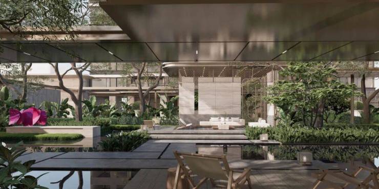 国际化大师景观团队倾力构筑,以“玉”为引,融入“繁花”,更有百年古树点缀,结合海南在地文化,以「六幕十二境」营造奢雅尊崇的礼序归家体验。