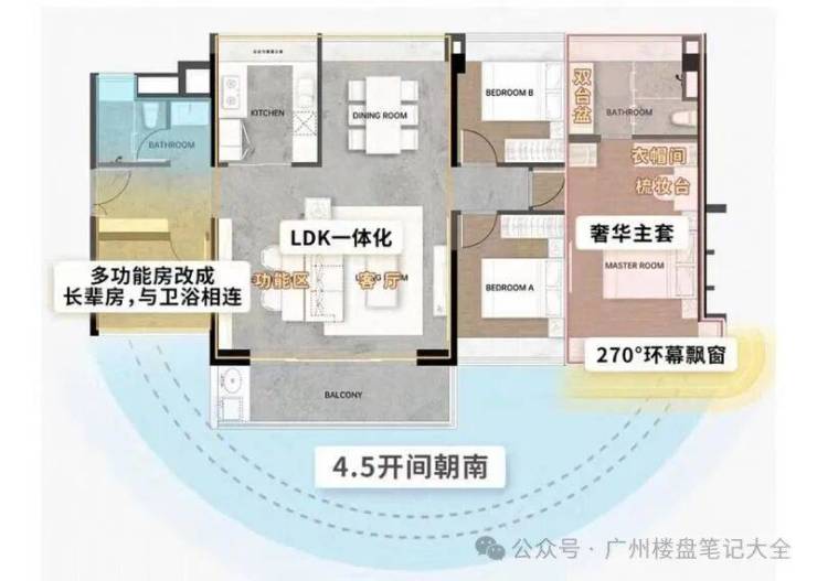 整体价值:7.6m³整墙收纳+南向9m采光面+5㎡全景厨房+270°景观主卧套间