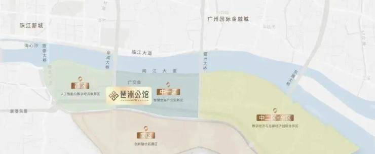 琶洲与珠江新城、金融城形成广州CBD黄金三角,琶洲定位为国家级人工智能与数字经济试验区、省级经济开发区、市级总部经济集聚区等创新平台称号,是广东省谨此一个在市中芯经开区,将打造“数字+会展+总部”融合创新的产业新高地。