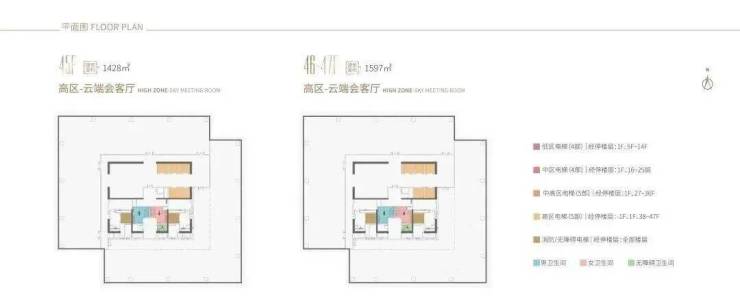企业会客厅:38-44F:338-479㎡45-47F:1,427-1,596㎡(整层)