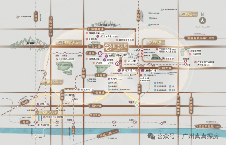 项目距离地铁6号线黄陂站约2.5公里,步行完全不现实,不过好在门口有公交/楼巴接驳地铁,也可以通过骑行小电驴接驳,骑车大概需要8分钟左右,自驾的话,家门口就是广汕公路,周边还有开创大道等干线,开车去往科学城、天河智慧城都比较方便。