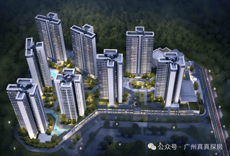 小区自身配建约1000方底商,门口有规划翔龙20万方商业综合体,距离项目最近的有东方汇广场,大型商业的话还要去到4公里外的萝岗万达。