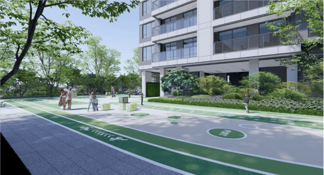 其次,依托地势整体抬高约9米,使楼盘拥有更大的园林空间的同时,进一步接近山景,把景观视野拉满,大有俯瞰天下的姿态,还能沿着绿道慢跑刷步数,或漫步遛娃遛狗,十分惬意。尤其是在疫情波动、常态化的当下,人们更希望拥有一种更健康的生活方式,临山而居,让因“快节奏”而被折叠的空间,能得以舒展。