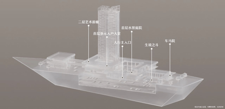 项目创造性地设计了“超级底盘”,跳出了传统社区功能分区的局限,将归家入户、园林等公共空间有机串联,通过三层空间分层规划,每一层都铺陈出极具质感的生活场景,让生活中的“声音”各归其位。