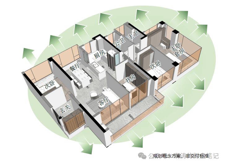 🔸扣住每一个广府居住细节:五开间朝南、全屋南北对流