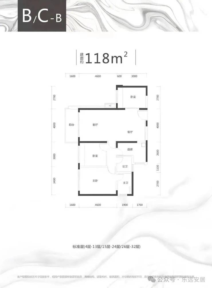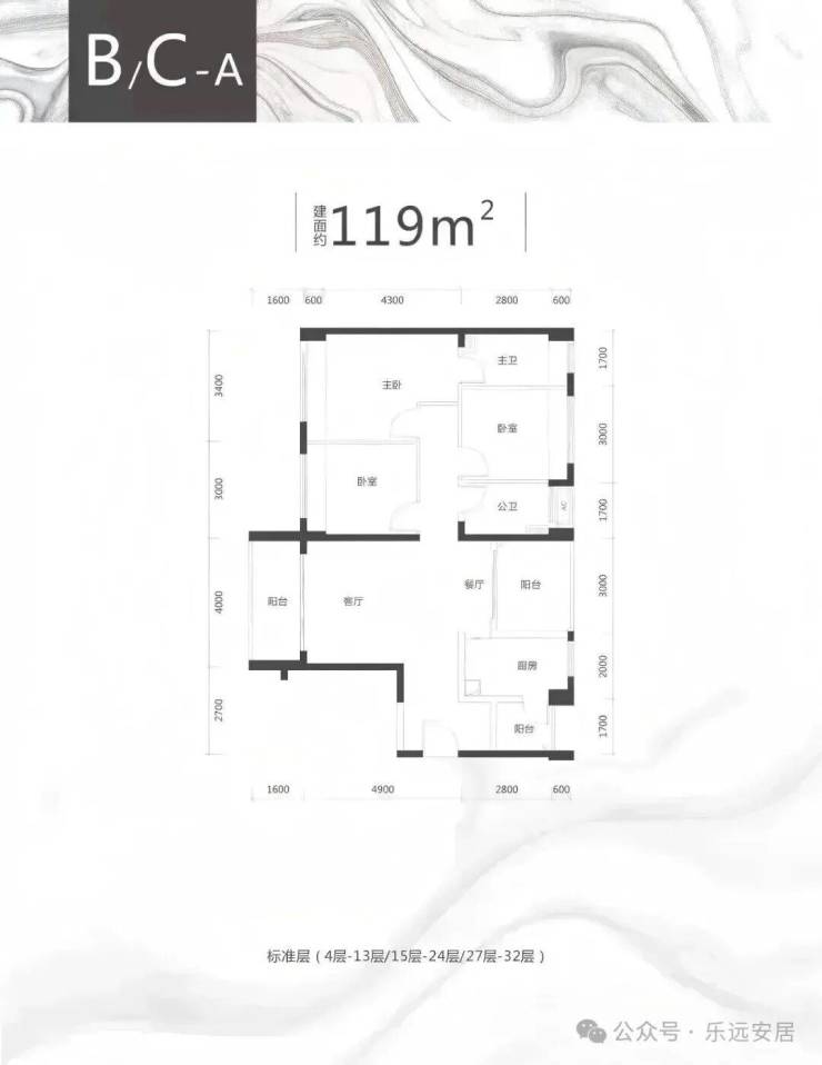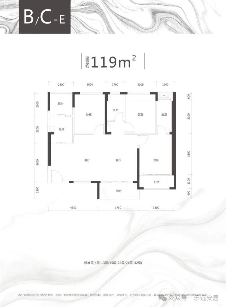 C栋B/C/E户型、约118-119㎡三房两厅两卫