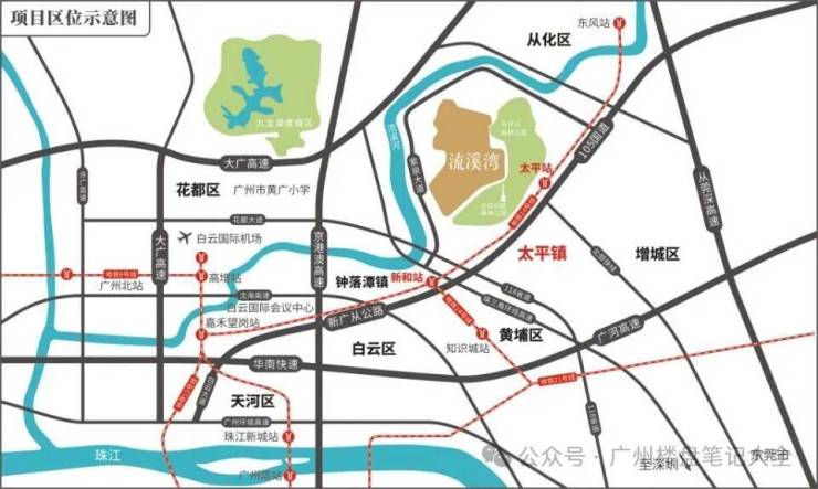 项目位于广州市从化区太平镇105国道流溪河旁,与中新知识城、白云区、花都区及增城区接壤,是广州紫泉房地产开发有限公司精心打造的一个集山水为一体,依山而造的千亩山水低密度社区。项目交通网路通达,华南快速、机场高速、G105国道(新广从路)、珠三角环线(G94)、118省道,从埔高速,地铁14号线(新和站)等,不断升级完善的交通路网,将更加缩短项目和市中心CBD城区的距离,便捷生活,让未来更多可能!