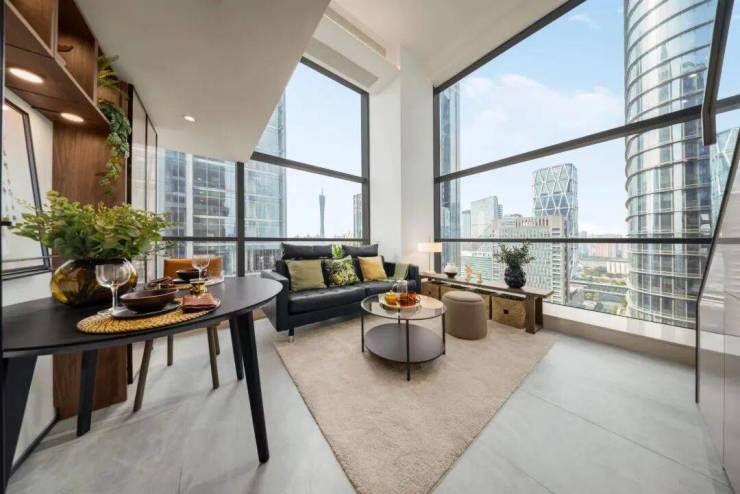 现在越秀琶洲ONE57公寓已经开放高层实景样板房,部分单位可一览广州塔和琶洲CBD城市景观,这种拥有琶洲CBD城市核心地段的公寓产品非常罕见,未来在整个琶洲西区里面也很难再有相同类似的产品,所以越秀琶洲ONE57这494套复式公寓非常稀缺!