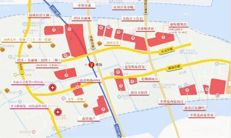 生活配套方面,项目周边规划和建设中的资源也很丰富。教育上,横沥岛规划了 3 所小学、3 所九年制学校和 1 所十二年制学校,其中 54 班九年制学校和 48 班小学预计 2026 年前投入使用。