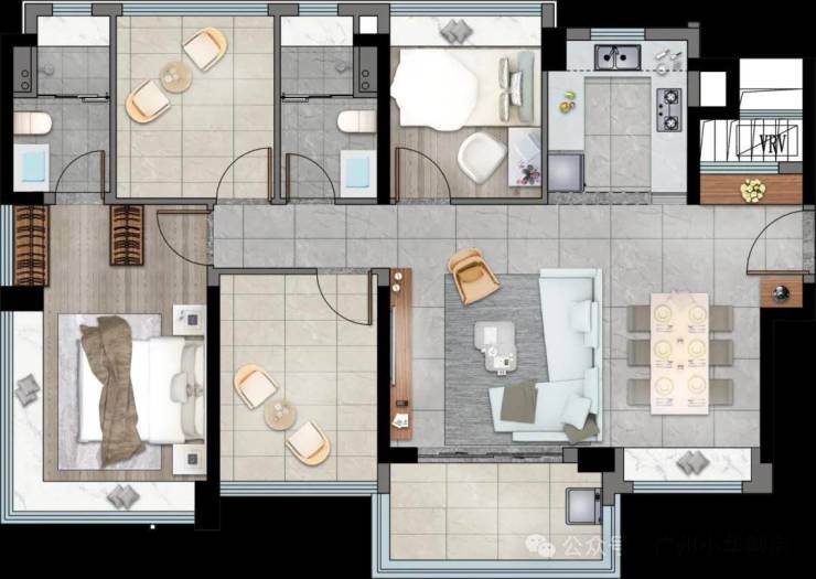 ◎6大场景:社交情景露台、C位长桌餐厅、家庭全能聚厅、社交陪伴餐厨、蜜月主卧套房、互动式学霸空间