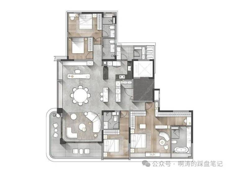 同时,台系主打三大健康体系:先天健康、科技健康、心灵健康。将自然引入室内,贴合人体习惯的健康科技,在空间上优化人际关系,实现身体和心灵双重满足,构筑家庭、邻里、圈层共融。