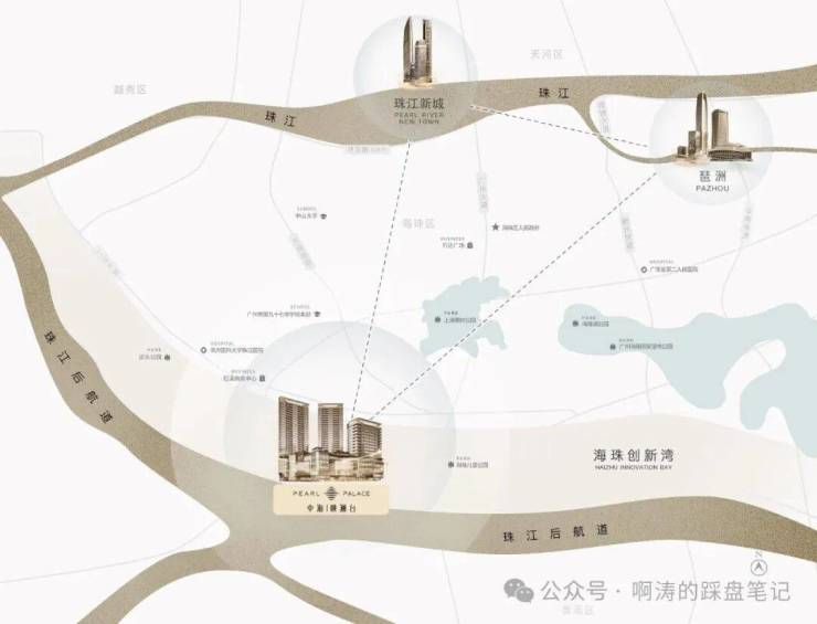 5年322宗地,9块江景,占比2.8%,但南向一线无遮挡江景,只此映澜台。项目位于珠江南航道核心地段,距江面约78米,近800米阔绰江面,四江交汇、双岛点缀,拥有绵延10公里的江岸线景观,汇聚城市塔尖配套与圈层。
