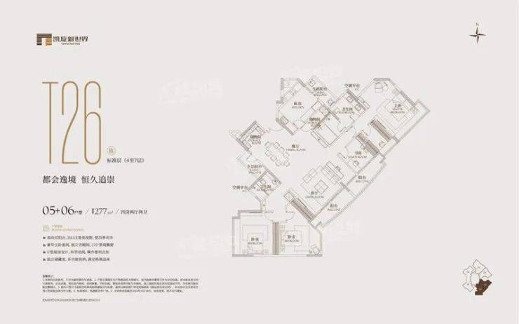 在户型设计上,凯旋新世界广粤尊府充分考虑了居住者的需求,与传统户型相比优势明显。这里的户型面积都较为宽敞,以大户型为主,最小的也在170㎡以上。例如建面约254平的户型设计为3房,建面约277平的设计为4房。户型借鉴四方合院布局,采用动静分区设计,强化了“天圆地方”的形势。