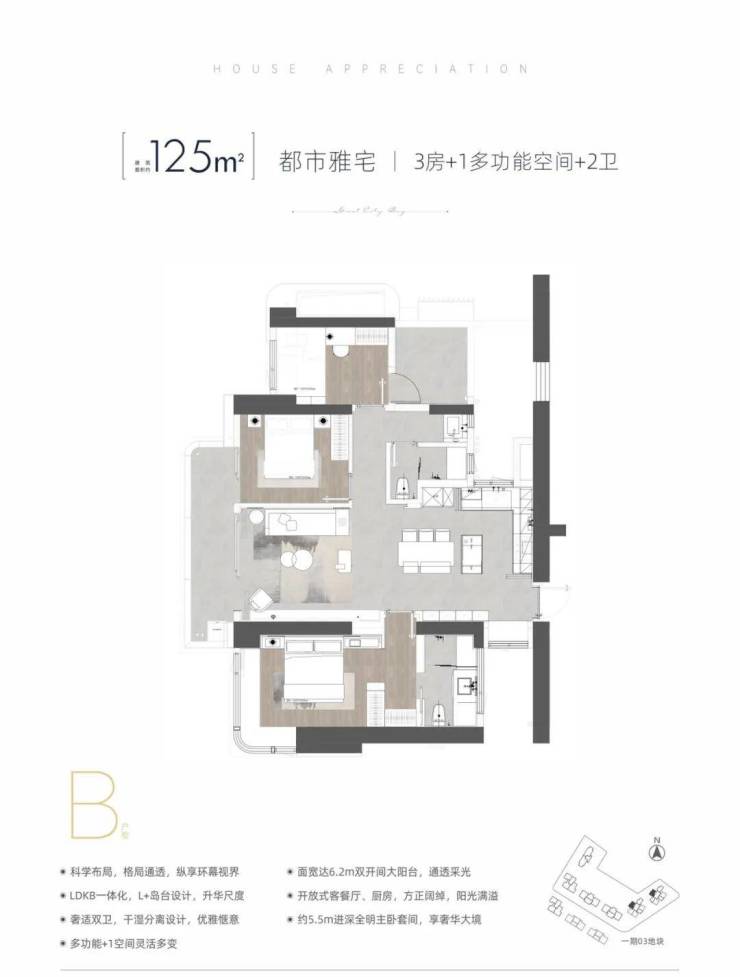 ⋐ 125 ㎡3+1房1200-1400万