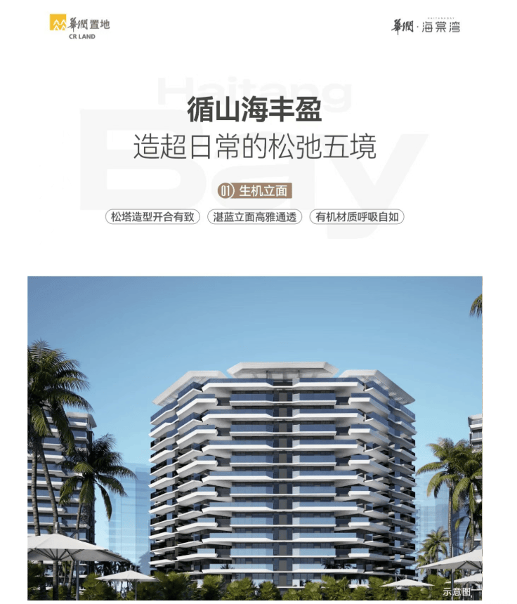 华润置地旅度2.0产品系升级之作国家海岸·约5500亩生态基底·全球旅居作品【大师执笔 为全球度假缔造艺术奢享】海棠悦府二期邀请四大全球大师,以全球化审美重构国家海岸的度假语言,提取在地意境、极致格调与非日常化生活,营造宁静松弛的旅度生活场景,于万亩生境之上匠筑公园森境,带来海岛谧林的隐奢旅居,感受超越日常的生活体验。
