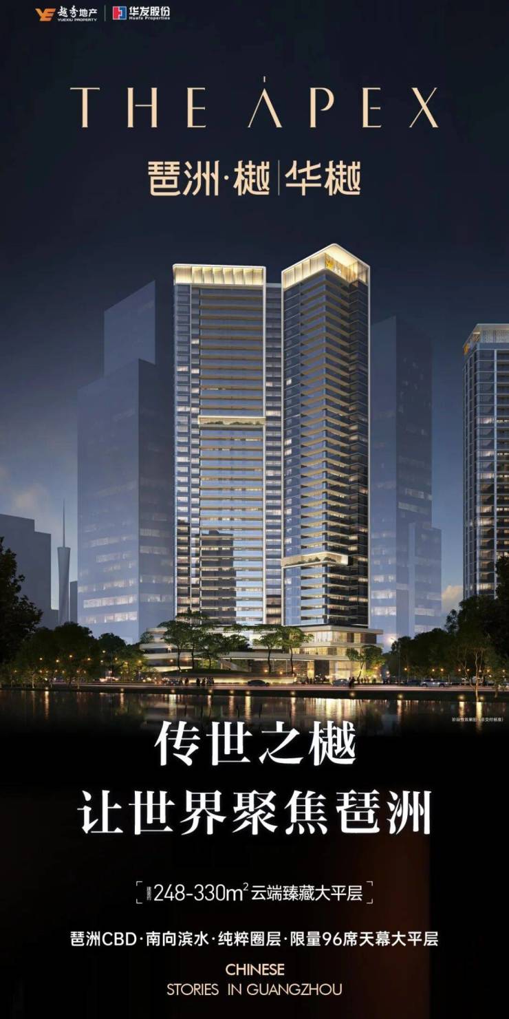 目前琶洲西区331住宅地块正式定名:琶洲·樾|华樾,现在琶洲樾华樾住宅项目也已经正式对外推售,主要在售户型为大面积的248-254-330㎡天幕CBD大平层豪宅,总共仅96席琶洲CBD核心顶豪大平层产品。