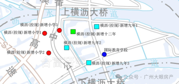 横沥岛上规划小学3所、九年制学校3所、十二年制学校1所,国际学校1所;其中,1所54班九年制学校(2026年投用)及1所48班小学(2025年投用)已获批建设。