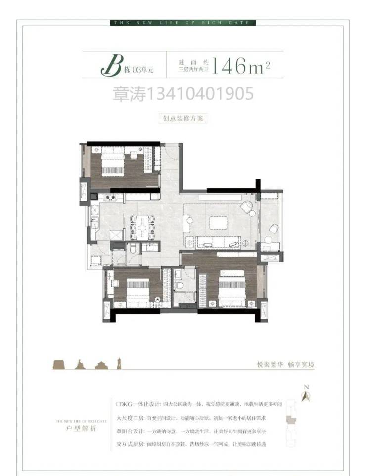 B栋03单元东西对流146㎡大厅大房三房户型: