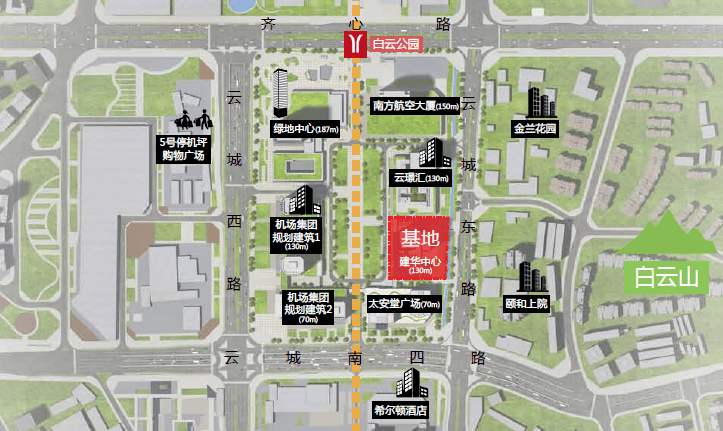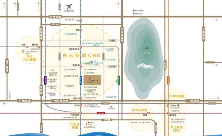 位于广州白云新城中轴中心,东临云城东路/白云山、南邻希尔顿酒店/万达广场、西接绿地中心/五号停机坪、北面是南航总部/白云公园。