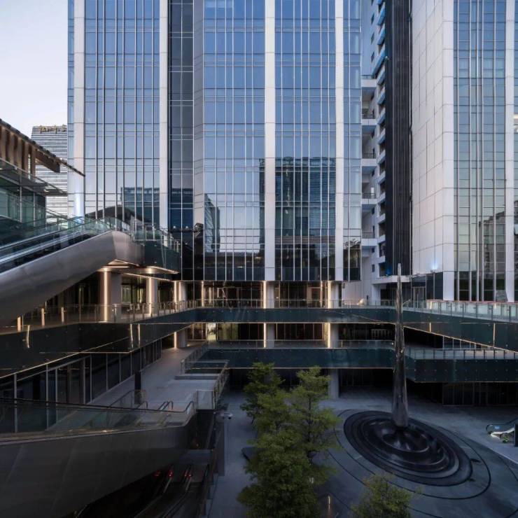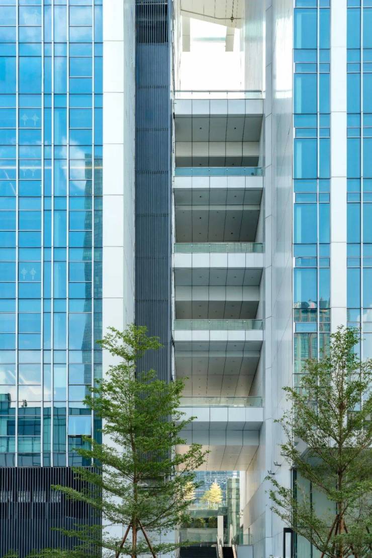 面对绝佳的自然风景资源以及不同的功能需求,团队提出了“白云之窗”的设计理念,巧妙地将两座不同业态的塔楼在不同高度彼此连接,形成极具整体性的地标轮廓,并营造出丰富的公共空间以及极富意蕴的城市景窗,糅合岭南意蕴,构建出独特现代的综合体建筑群。