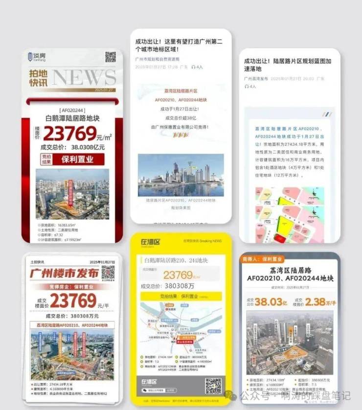 拿地即爆,传奇甲第系锚定世界白鹅潭,时间回溯至2025年1月27日,保利置业广东公司以38亿成功竞得荔湾区陆居路AF020210、AF020244地块。消息一出,迅速点燃市场热情,各界目光纷纷聚焦于此。