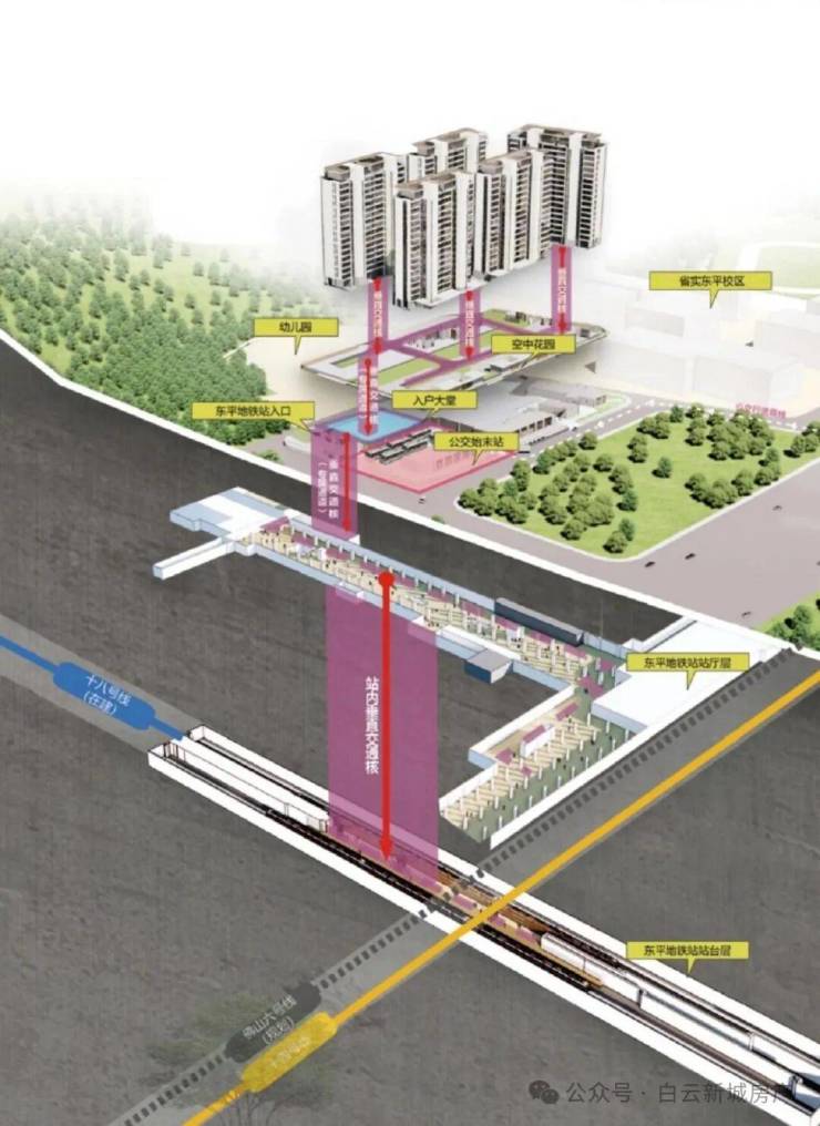 白云东平站和公交总站上盖,拥有专属地铁归家通道,享受两种交通模式,无风雨,无温差,归家舒心便捷。