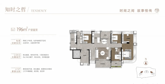 196平户型,做了双主套,客厅、卧室、阳台等开间尺度也比同面积段产品更大。