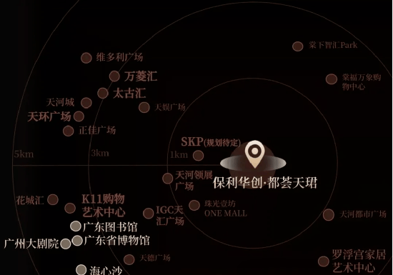3公里范围内,也有不少商业,正佳广场、天河城、天环广场、太古汇都在这个范围。