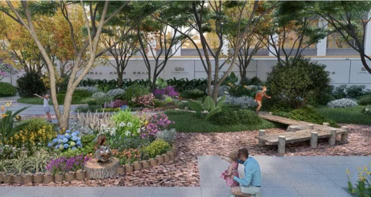 社区园林景观组团及重要节点的植物营造考虑四季不同的色彩变换,并考虑植物层次的搭配组合,打造绿树林荫、四季有花、四季有景的生态剧场。