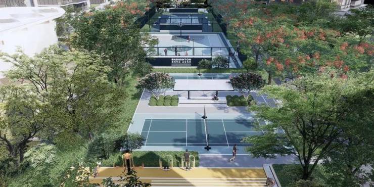 约10000㎡体育场中央体育公园,配置羽毛球场、篮球场、网球场等运动设施,构建现代化、全龄化、活力化的中轴运动公园。