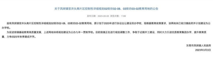 直线距离约1.5km内,规划建设公办九年一贯制学校
