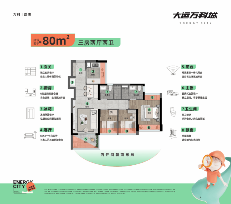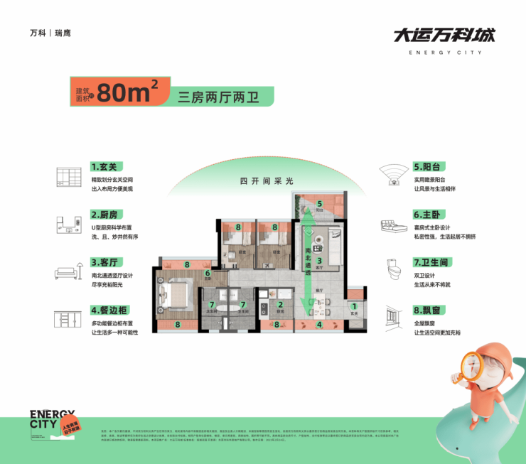 一般的房子,80平只做一卫,100平只做三房。但万科就像是空间魔法师,推出针对刚需的“神仙户型”:建面约80平三房双卫,100平四房。