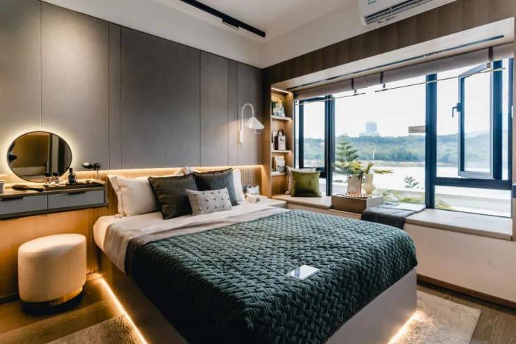 100平做到四房,约达91%使用率,4间卧室都有全景大飘窗,通风采光好,主卧有嵌入式衣帽间设计,次卧无论是打造为书房、钢琴房,还是工作间、电竞房都没问题。