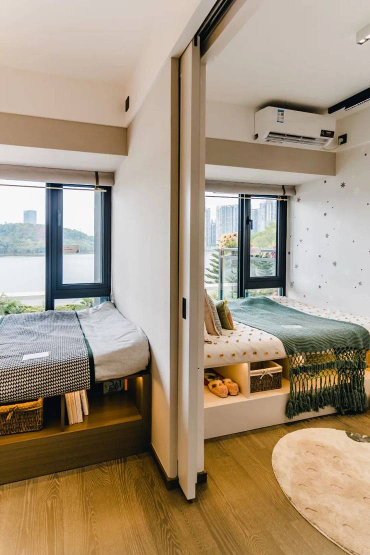 卧室通风采光都很好,再加上双卫浴设计,一家三、四口洗簌分配也从容,即使有朋友过来玩,也不用尴尬。