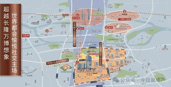 耀胜新世界广场项目位于万博-长隆商圈三轨交汇枢纽之上,三号线和七号线及佛莞城际轨道线交汇, 生活圈串连起珠江新城中央商务区、高铁南站及白云机场,快速便捷辐射东莞、广州、佛山三个大湾区城市。