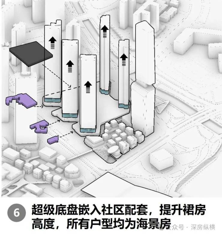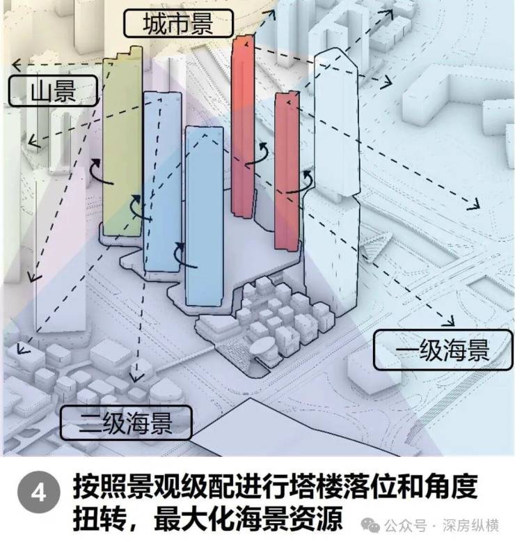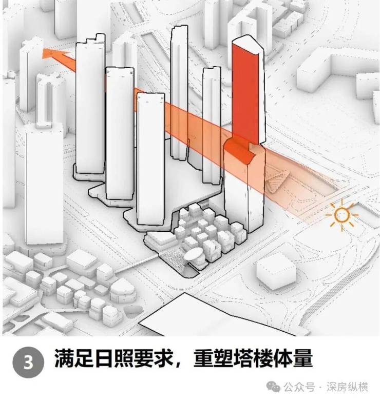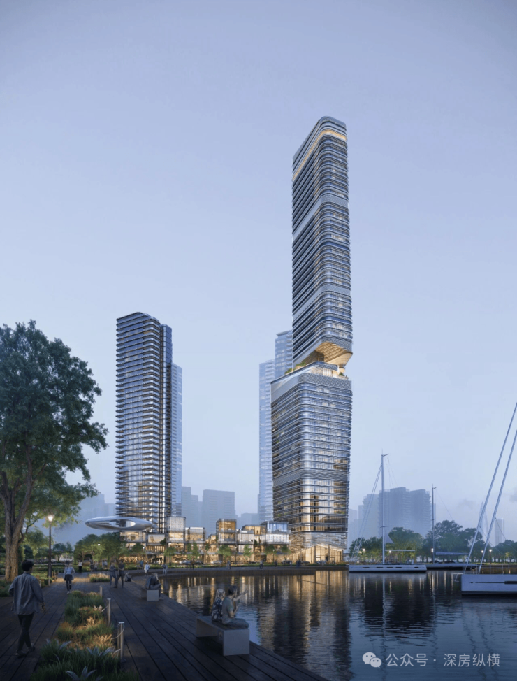 其二,地标重塑与天际线构建。规划以 250 米超塔引领东角头片区的新地标群,并与深圳湾一号、华润春笋等超塔建筑相呼应,共同塑造深港对望的门户意象,强化深圳海岸线的识别度。
