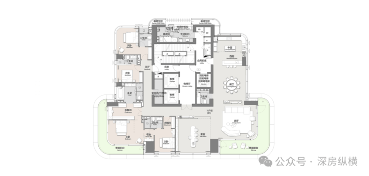 公私分区泾渭分明,电梯厅成为专属过渡空间,既保障隐私性,又赋予归家仪式感。