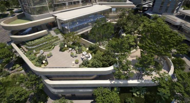 有意思的是,由于花园漂浮在空中,当业主漫步于浮翠绿洲时,可以俯瞰美景,但路人却看不到他。
