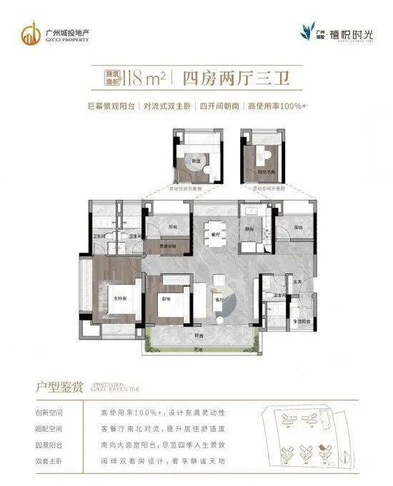 住宅户型:约78-118m²精装三至四房