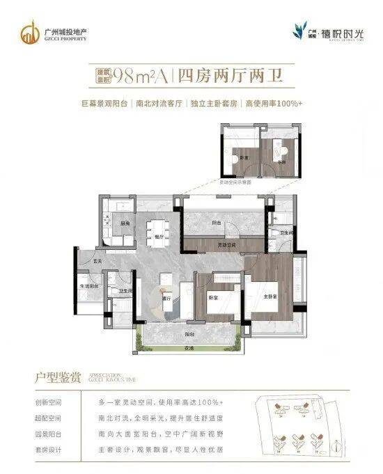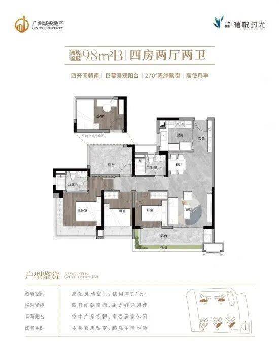 全屋超实用大开间设计,打造四开间朝南+奢阔景观阳台+大尺度飘窗+高拓展空间,让生活大有“享”法,户户主卧带270°巨幕飘窗,日常起居尊享超广角风光。