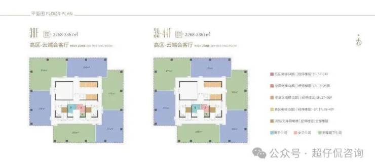 38-44F,是企业会客厅,约338-479㎡ 45-47F,约1427-1596㎡(整层)