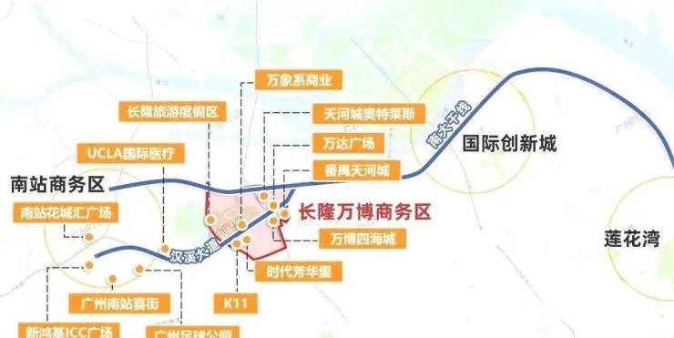 往南上番禺大道,只需要10分钟左右就可以到达番禺万博。