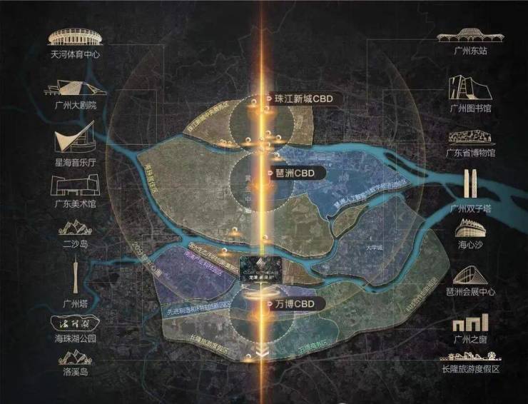 同时也属于广州中轴之上,串联珠江新城、琶洲、万博三大核心CBD,东塔、西塔、广州塔等广州城市级地标建筑均分布其中,享受最顶级城市资源。