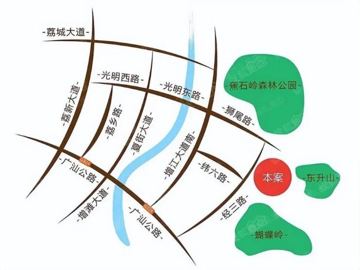 往西:荔城大道、光明西路、广汕公路直达荔城、朱村科教城板块,10分钟可接济广高速45分钟直达天河