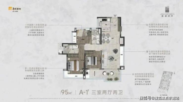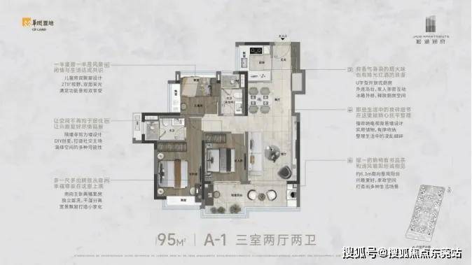 松湖润府主力户型有95㎡、105㎡、125㎡、143㎡不同面积段,多种户型可选,而且各有特色。其中,约95㎡的面积段就做了3个户型,尽管是面积段最小的户型,但在LDKB一体化布局和阳台扩大化的加持下,有120㎡的尺度感。