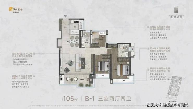 105㎡户型,在市面上普遍都是三房设计,而松湖润府做到了 3+1房,这样的全生命周期户型,让人很难拒绝。